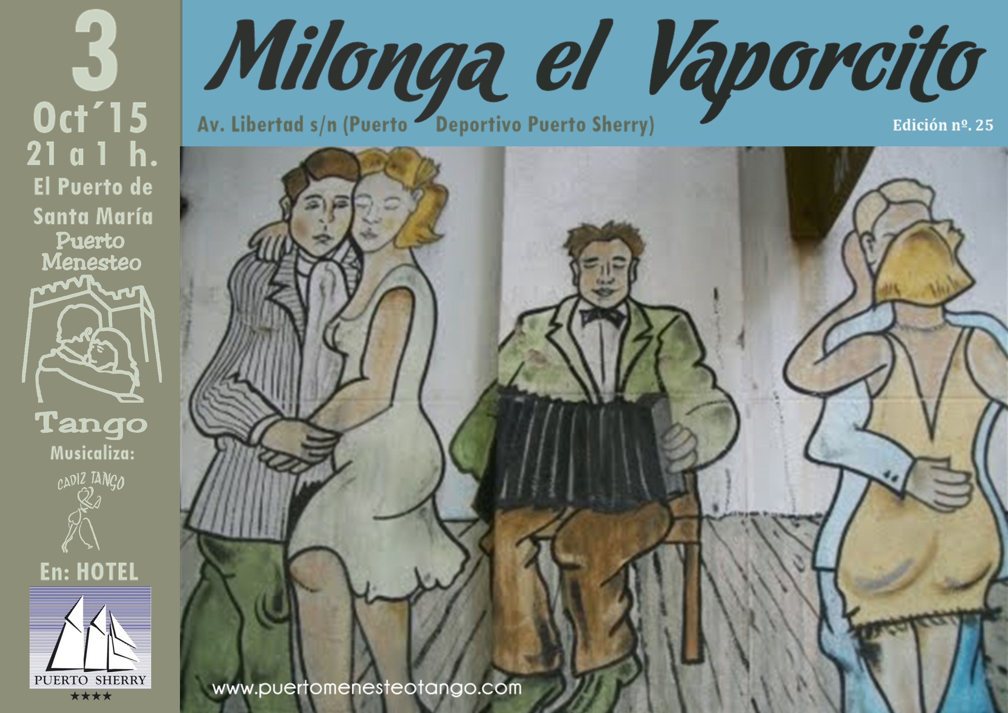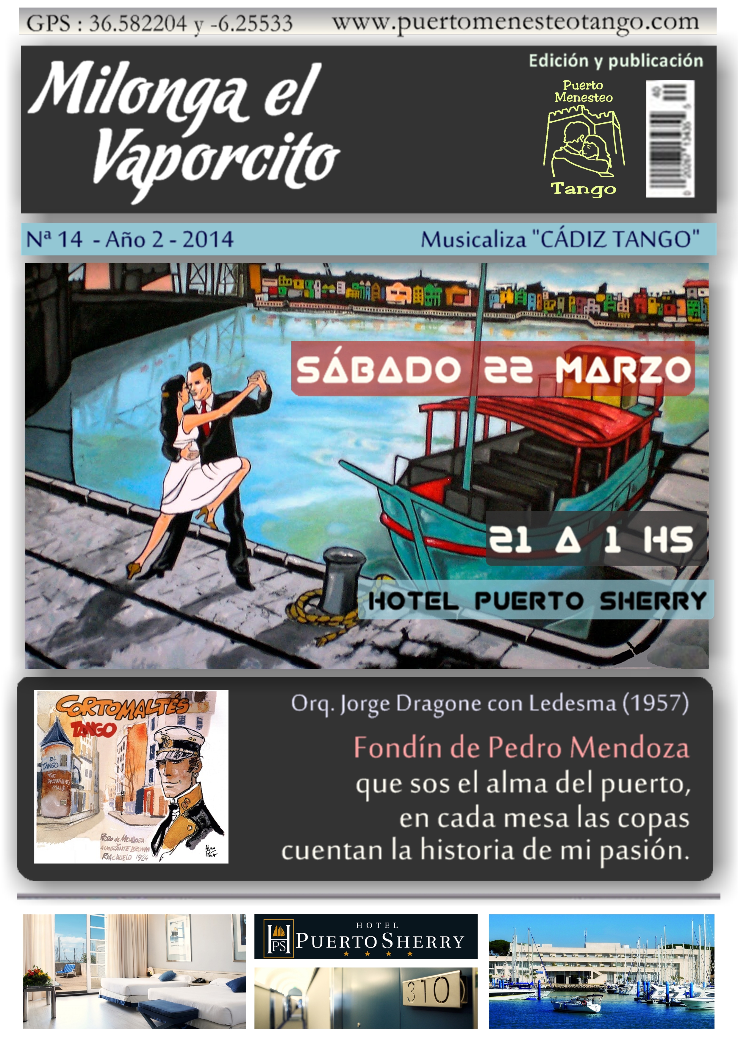 Pasan 5 meses sin milongas, el 23 de Noviembre 2013 se reanudan en las instalaciones del Hotel Puerto Sherry, se desarrollan en el Salón Columbus, Disco MarSalá, Terraza Club & Ocio, de manera continua hasta el 5 de Noviembre 2016. Nuevamente un cambio de dirección del lugar, en esta ocasión el Hotel Puerto Sherry, deja en principio este proyecto varado en puerto.